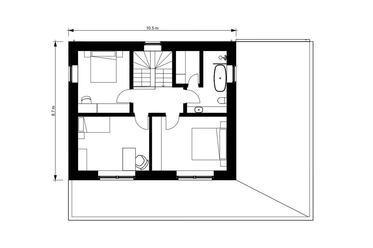 Magnus – divstāvu dzīvojamās mājas projekts, kas lieliski piemērots jaunai 4-5 cilvēku ģimenei. Pilnajā mājas komplektā ietilpst arī terase un nojume automašīnai. Kopējā terases platība 75 m2.