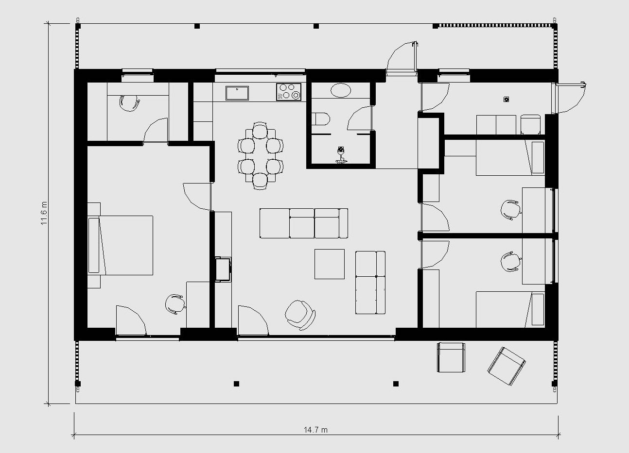 Tribus – vienstāvu dzīvojamās mājas projekts, kas lieliski piemērots jaunai 4-5 cilvēku ģimenei. Dzīvojamā platība 100 m². Projektā veiksmīgi līdzsvarots praktiskums, plašums un augstākā līmeņa inženiertehniskie risinājumi. Pieejams arī Tribus “Rūpnīcas komplekts” atbilstoši pasīvās mājas standartiem. Vairāk informācijas pie mūsu speciālistiem.